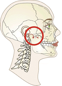 A mandíbula é ligada ao crânio pelas ATMs (Articulações Temporomandibulares), duas articulações ligadas pela mandíbula que se localizam na frente do ouvido, dos dois lados da face.